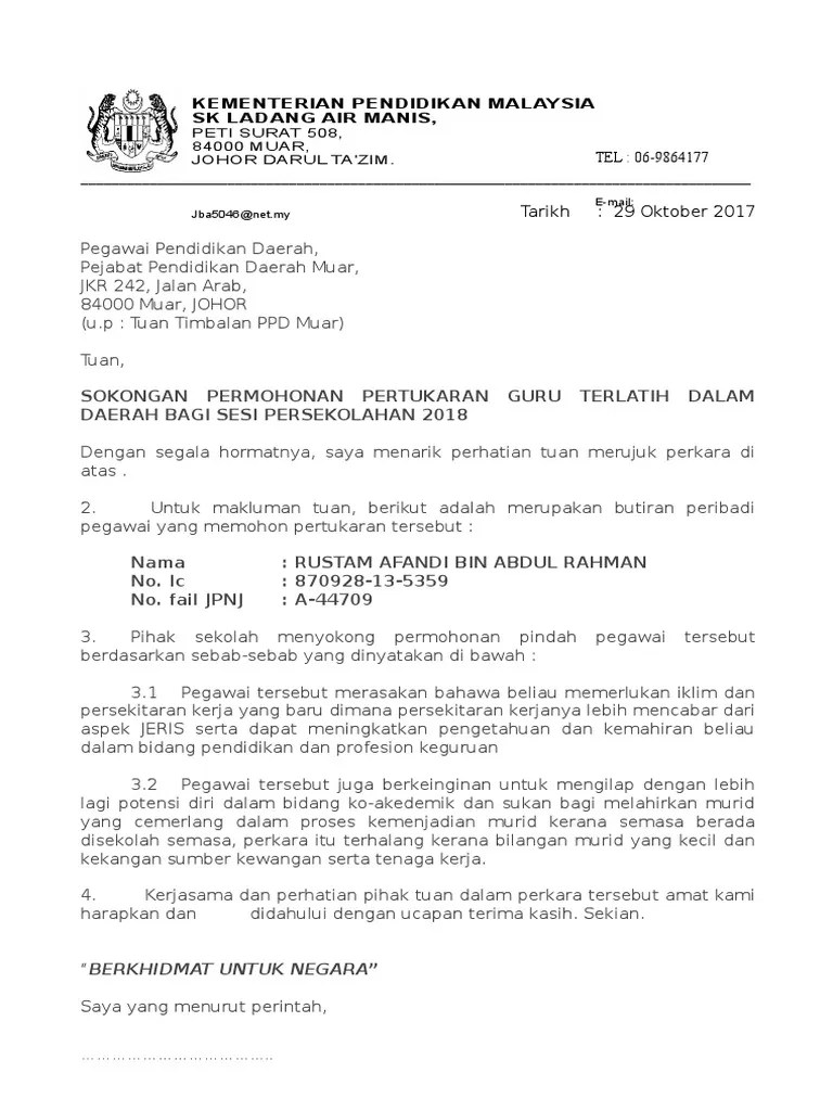 Tujuan permohonan ini dikemukakan kerana: Contoh surat permohonan pertukaran tempat kerja nama penuh anda. Contoh surat permohonan pertukaran tempat pekerjaan part 2.